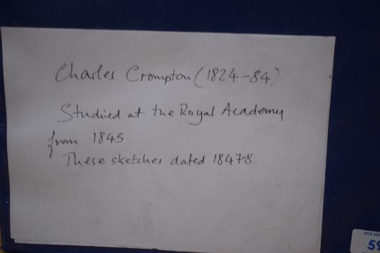 Charles Compton (British 1828 - 1884) a folder containing a collection of sketches mainly portrait studies, many are signed and dated in pencil and ink, attributed and dated (1847 - 1848) to front of folder, 31cm x 42.5cm overall.