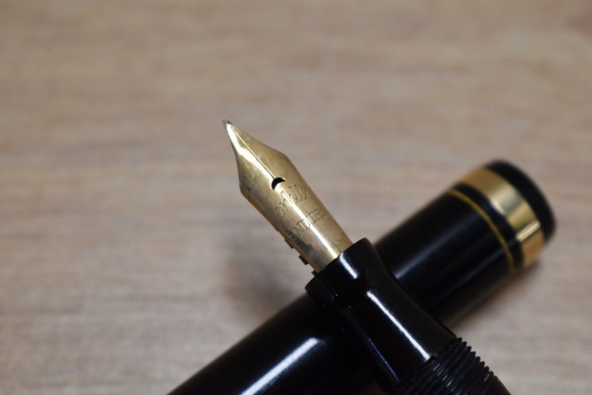 A Conklin Endura lever fill fountain pen in Black with a broad band on a ring cap with Conkin Endura nib. Circa 1930