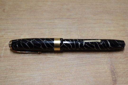 A Conway Stewart Executive 60 lever fill fountain pen in Black Cracked Ice with wide cap band having Conway Stewart 14CT Gold nib. Circa 1958