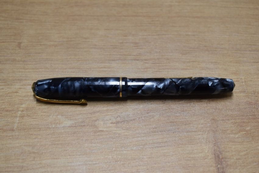 A Conway Stewart 85L lever fill fountain pen in Blue Marble with single cap band having Conway Stewart 14CT Gold 3 nib. Circa 1950
