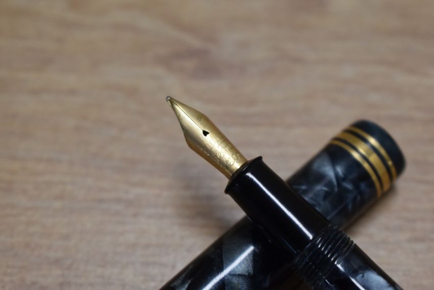 A Conway Stewart 388 lever fill fountain pen in Grey Marble with one broad and two narrow cap bands having Conway Stewart 14CT Gold nib. Circa 1950. Needs Lever replaced