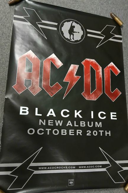 An AC/DC 'Black Ice ' 2008 promo poster measuring a huge 5ft by 125 cm - been kept rolled not folded - a nice item that would fantastic framed and displayed , been kept rolled not folded- does display some light wear to edges , rock / metail interest