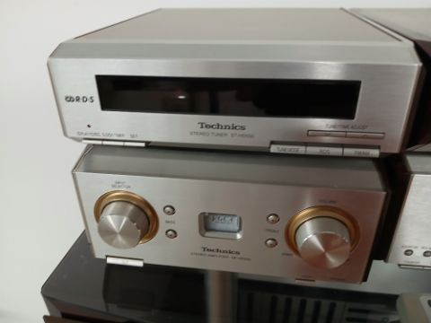 A Technics stack system in the form of seperates on a stylish Alphason stand - comes with speakers - CD Player - SLHD550 / Cassette Deck RSHD550 / Amp SEHD550 / Tuner STHD550 with remote