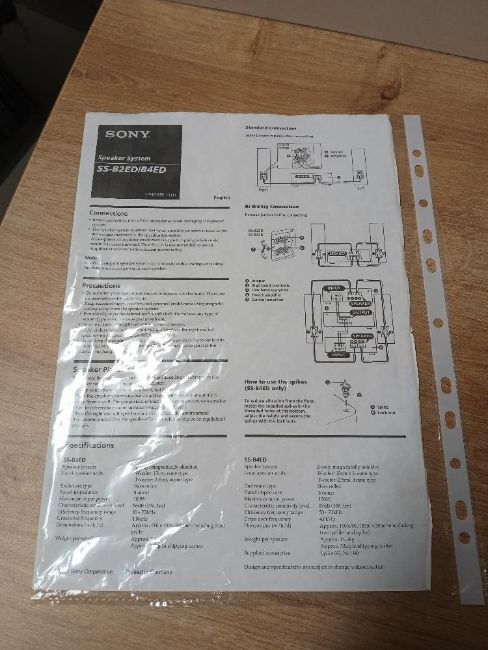 A pair of Sony Speakers SSB2ED - a nice pair of speakers in wooden cases with info sheet