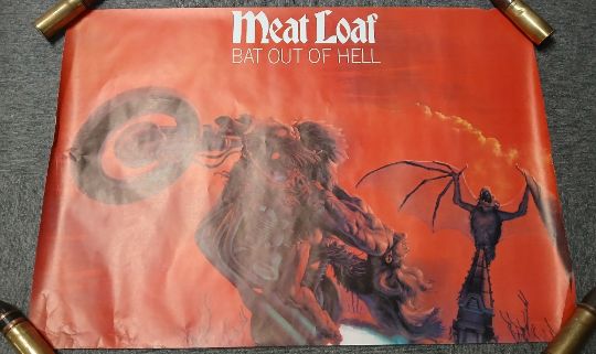 A Meat Loaf ' Bat out of Hell ' poster , possibly a promotional item - measuring 89 x 64 cm - a little wear as in photos , rock , classic rock interest