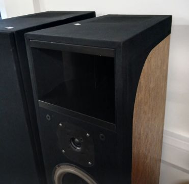 A pair of Impulse H2 Stereo Loudspeakers with 3-Way Horns - new tweeters and mids - bass re-foamed 2024 , antique gold wrap on top of original rosewood cheeks - come with a set of spikes , nice working condition and highly sought after - please come in and view - amazing speakers and the first time we have had a pair in