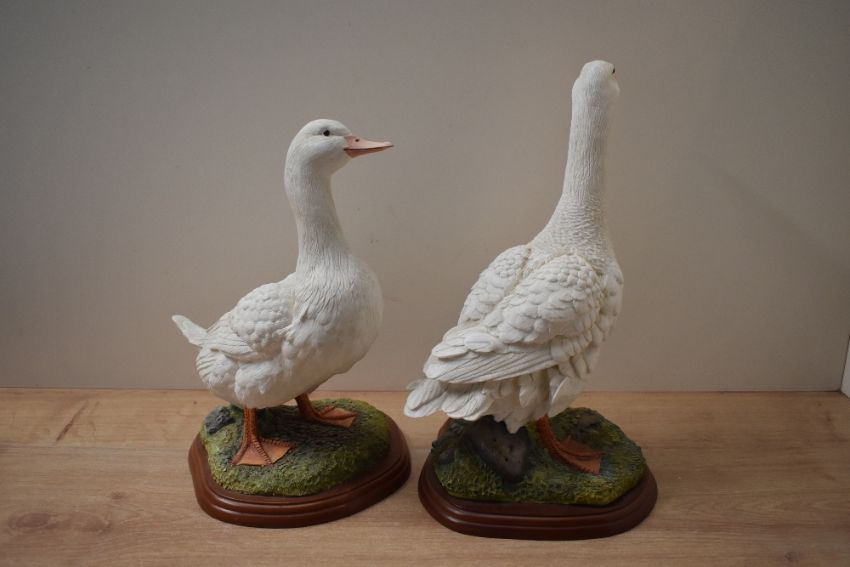 Two large Border Fine Arts bird studies 'Goose' model number A0125 and 'Farmyard Duck' model number A0126 both designed by Russell Willis, measuring 33cm and 30cm tall.