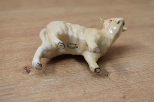 A Beswick Pottery Charolais Cow and Bull trio comprising 'Charolais Bull' model number 2463A designed by Alan Maslankowski, 'Charolais Cow' model number 3075A having unknown designer and 'Charolais Calf' model number 1827B designed by Arthur Gredington all in tan and brown gloss finishes.