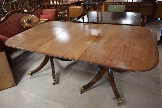 An early 20th Century Regency revival mahogany extending dining table of typical design, ends 74cm, two centre leaves 60cm, width 119.5cm