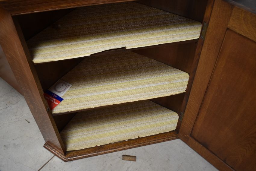 A Victorian oak corner cuboard having bobbin gallery , height approx. 90cm