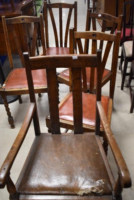 An early 20th Century twist gateleg table and set of four similar chairs plus a similar carver chair