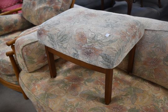 A modern Ercol low back three piece lounge suite and a similar footstool