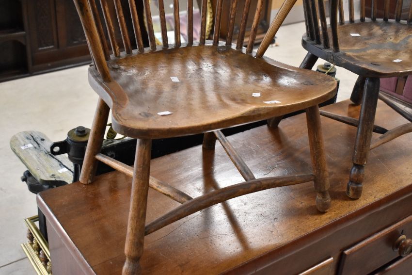 Two similar 19th Century Windsor style armchairs having spindle backs and crinoline stretchers