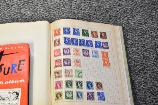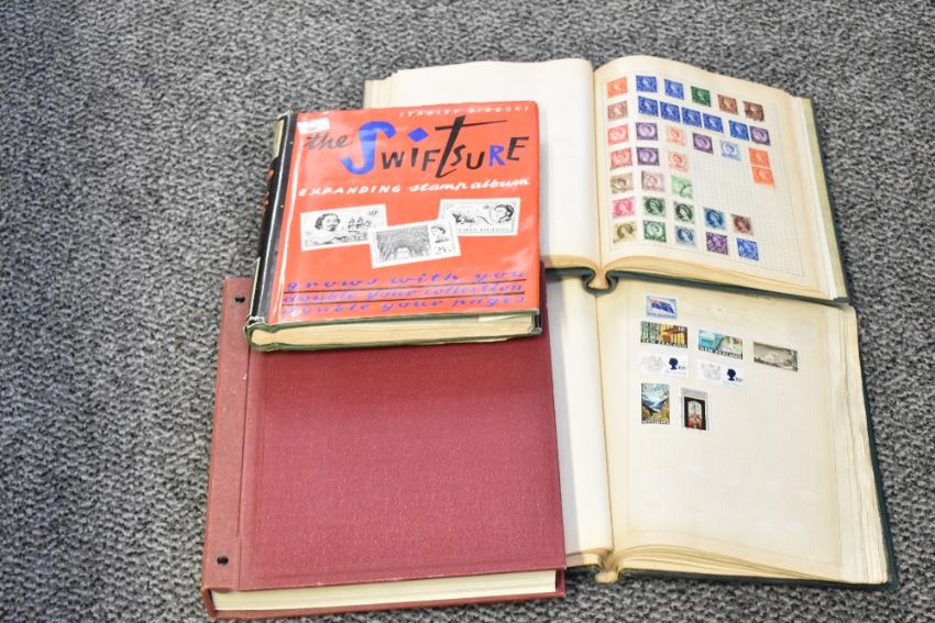 Four 20th-century amateur stamp collecting books, to include examples from Great Britain and the World, incomplete collections, (4 books), condition is consistent with age and use.