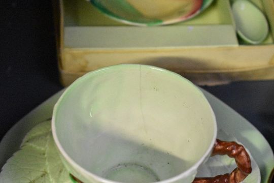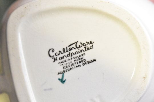 A selection of 20th-century Carlton Ware hand painted ceramic tableware, to include a Convolvus Lilac part tea set; two Rouge Royale leaf-shaped dishes, an oblong dish and a condiments set; a Rouge Royale Mikado pattern ginger jar; a selection of vegetable ware and more, all marked to base, (22 pieces), condition is consistent with age and use.