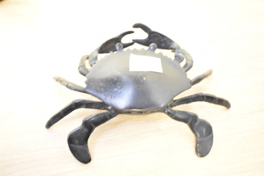 Three mid to late 20th-century metal decorative crabs, featuring individually crafted legs, shells and claws, unmarked, (3), condition is conistent with age and use.