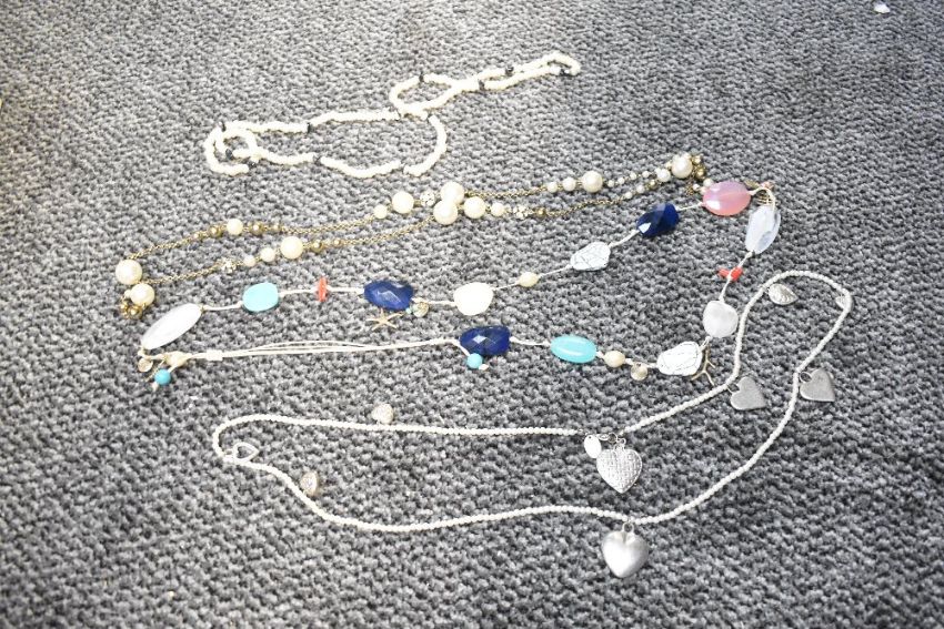 An assortment of costume jewellery, including faux pearls, beaded jewellery and statement pieces