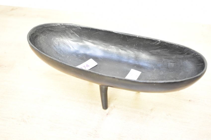 A 20th-century Japanese Nambu Tekki ironware ikebana tripod vase, featuring a minimalist design with a smooth texture reflecting the wabi-sabi-style, unmarked, 26cm diameter, condition is consistent with age and use.