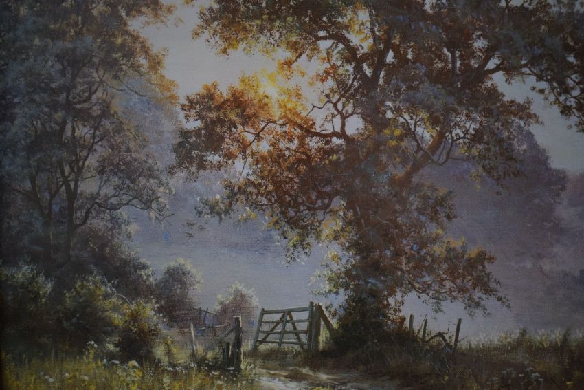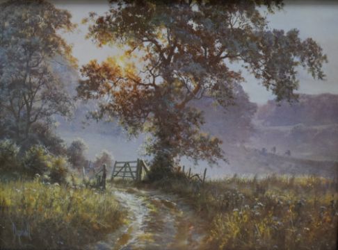 After David Dipnall (British 1941 - 2023) Lithograph 'The Summer Lane', sunrise through trees over a country lane with blooming wildflowers, facsimile signature lower left, within moulded gilt frame, under glass 39cm x 29cm & 53.4cm x 43cm overall.