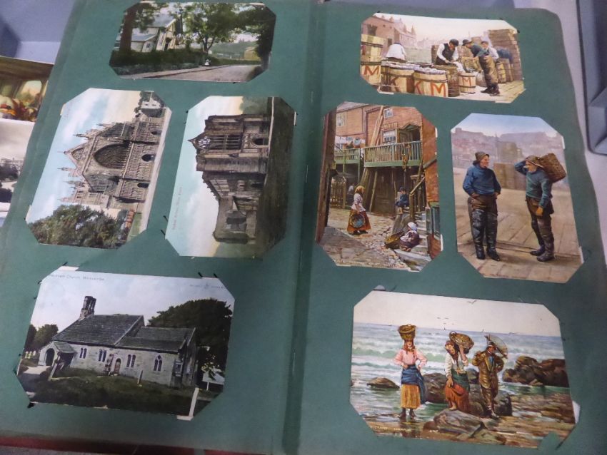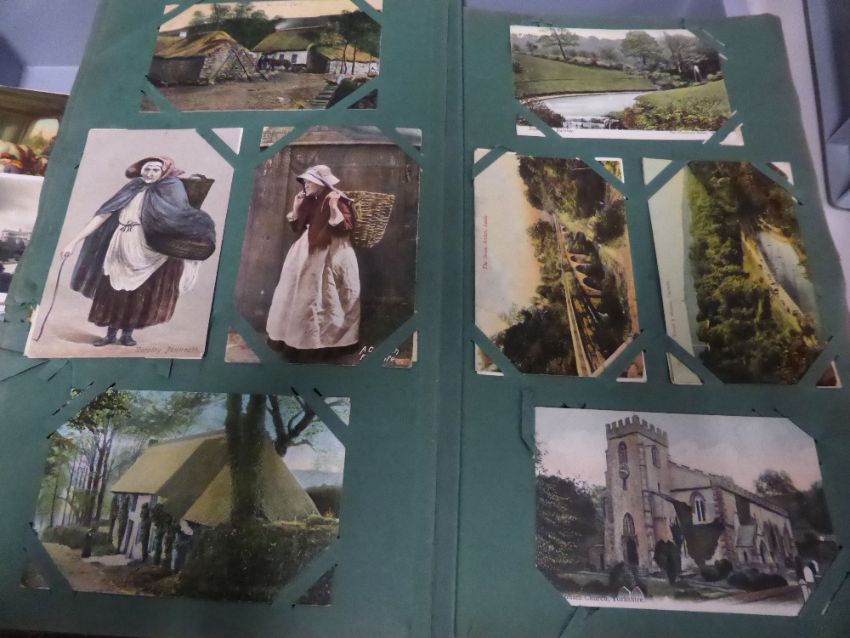 POSTCARDS: 2 ALBUMS AND BUNDLE OF LOOSE VARIOUS TOPICS, SUBJECTS AND PLACES Two postcard albums (rather tatty outers) with somewhat ecelctic collection of postcards within including various places in the UK, and some overseas, to include Egypt etc Within the albums a good couple of hundred cards, further bundle of apx 100 again UK, Overseas etc some more modern in the loose material.