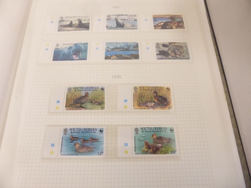FALKLAND ISLAND DEPENDENCIES (INC SOUTH GEORGIA 1944-89 COMPLETE MINT COLLECTION Beautiful FID colletion and later South Georgia collection which appears to be complete from the 1944 opts through to 1989, all of the definitive sets including QEII 1954 to £1, late 1960's South Georgia sets to £1, along with decimal surcharges and later paper change values. There then follows a complete mint collection with material from 1978 all housed in mounts and MNH. Viewing recommended.
