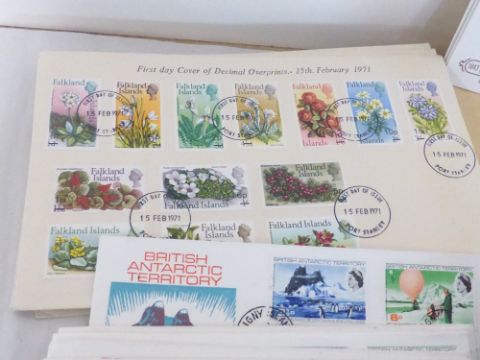 FALKLAND ISLANDS 1960's/70's RANGE OF FIRST DAY COVERS IN MULTIPLES Array of Falkland Island covers to include Defence force x 11, Bishop Stirling x 16, SS Great Britain x 13, Air Service x 15, quantity of SS Great Britain covers, surcharged Flowers x 8, finally BAT 1969 25th Ann of continuous work x 10 all with Signy Island CDS's.