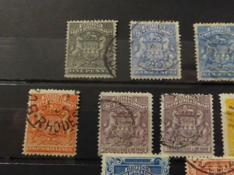 RHODESIA (BRITISH SOUTH AFRICA COMPANY) 1892 SET OF 11 DEFINITIVES - VALUES TO £2 FINE USED Card with fine used set of values from a penny through to £2 for this British South Africa Company issue of 1892 includes both 6d shades along with shade variations on the 2s 6d vaules. All CDS type cancels.
