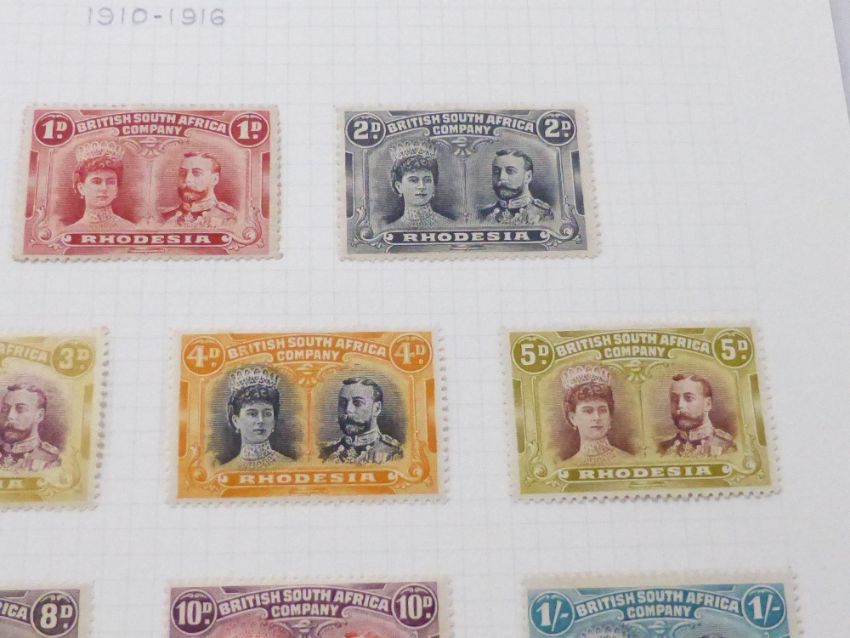 RHODESIA 1910-13 GV ISSUE ALL VALUES TO 5 SHILLINGS - MOUNTED MINT Single sheeted leaf with attractive range of the GV definitives of 1910-13. 15 values, all mounted mint with all to and including 5/-. Viewing recomemded.