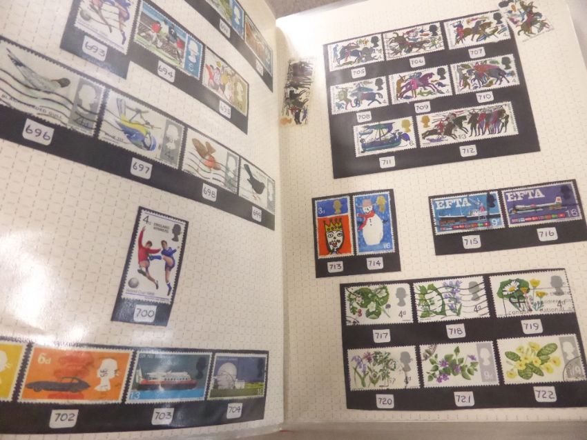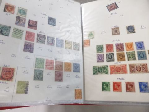 GREAT BRITAIN QVIC- QEII IN THREE RED BINDERS, FACE ESTMIATED £500+ Three volumes with all leaves in poly pockets first volume sees patches of earlier items good run of mid to later 1960's and thereafter dome 1970's, all appears to be largely used. Other two volumes continue to around 2004, but latterly all MNH issues, with plenty of NVI's etc noted. We estimate face to be in excess of £500.