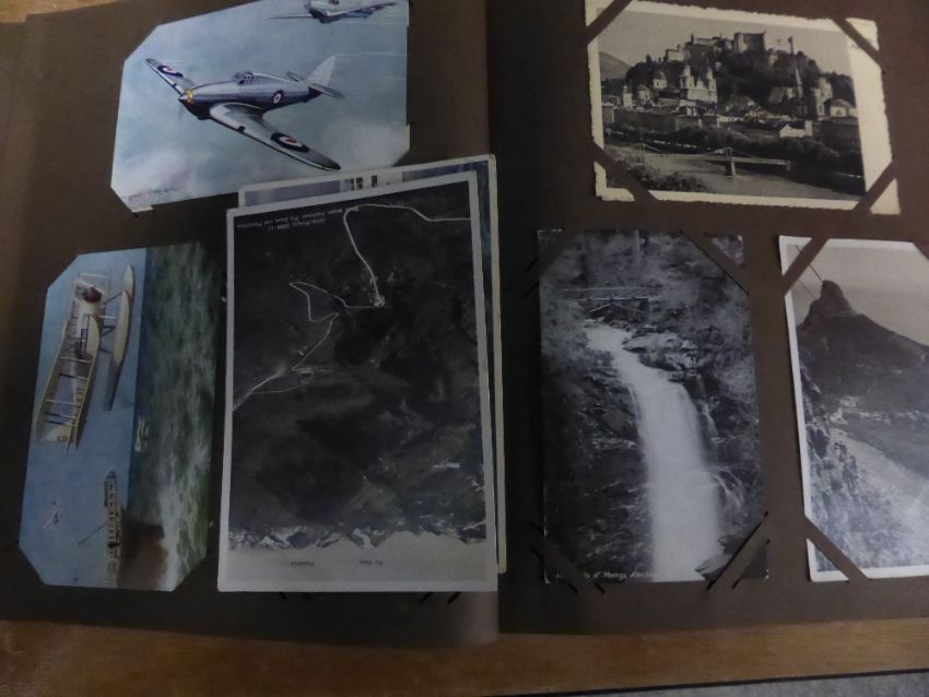 POSTCARDS COLLECTION OF APX 150, TRANSPORT, CATS, OTHER UK TOPO Album with a good mix of postcards from around the UK, but within also sub thematics of Planes, Trains in smaller amounts and other UK scenes including Northern Ireland, the North East, Sussex etc.