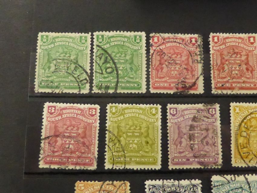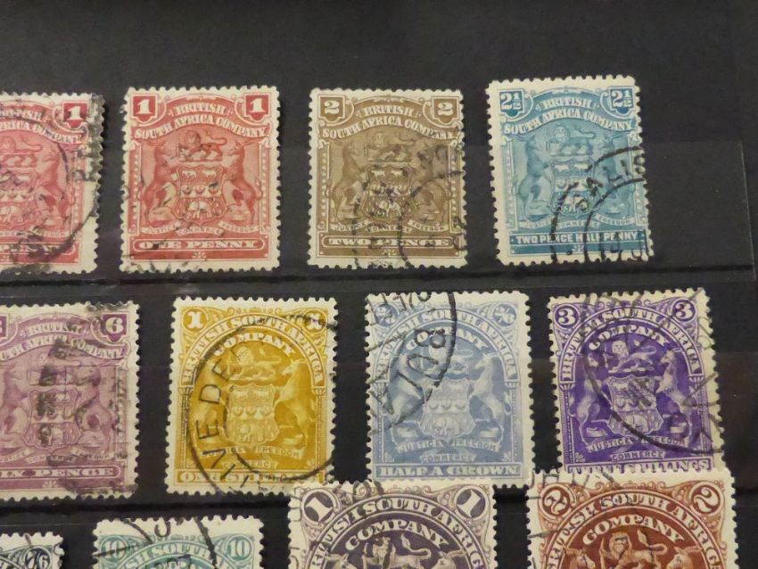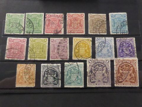 RHODESIA 1898-1908 SET OF 17 VALUES TO £2 ALL FINE USED Card with 17 values of the British South Africa Company issues of 1898 onwards, includes shade variations on several values. All fine used largely with values bearing double ring cancels.