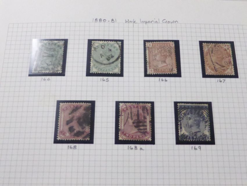 GREAT BRITAIN 1840's-1960's USED COLLN's IN 3 VOLUMES - MUCH VICTORIAN ERA Three albums first a SG one country with 1d black couple of 2d blues (no white line, one damaged) other good imperf reds and also in addition plated. Further surface printed, with a good array of issues, and plate numbers noted (apx 160 values) with EVII and other Kings noted. QEII to mid 1960's (used) and some regionals and dues etc to rear. Other two albums we notea victorian stamp collection, largely based on plated reds, and well filled, some blues, bantams etc to rear. Final album is stuffed with penny reds, plated unplated, identified, not identified! Good postmark ranges etc noted. Hundreds of stamps in total