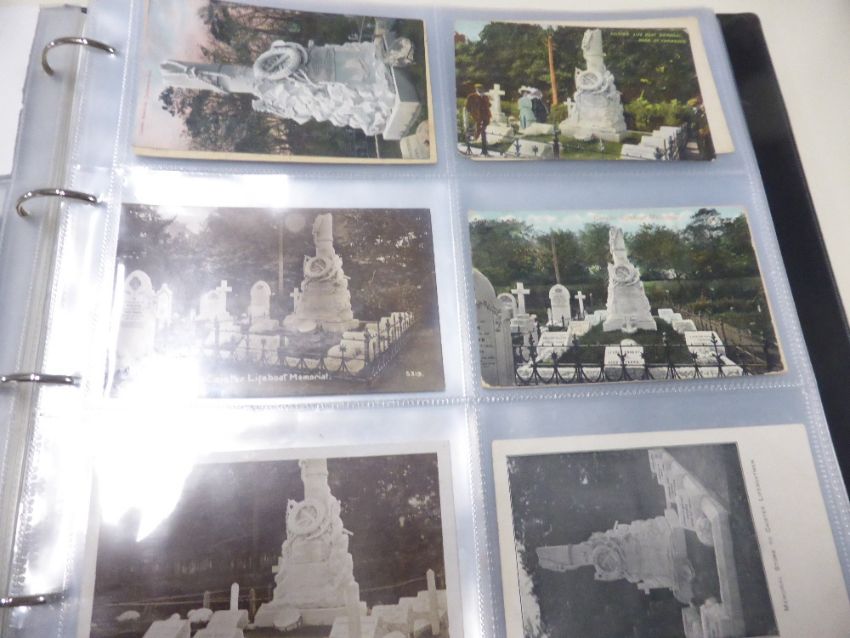 POSTCARDS: SHIPS & LATTERLY LIFEBOAT MEMORIALS IN ALBUM APX 120 CARDS Album with interesting collection of postcards, most pertaining to model ships and for example putting them in to glass bottles. Latterly in album a few cards entitlted people with cameras and also Lifeboat memorials. Viewing recommended for this eclectic collection.