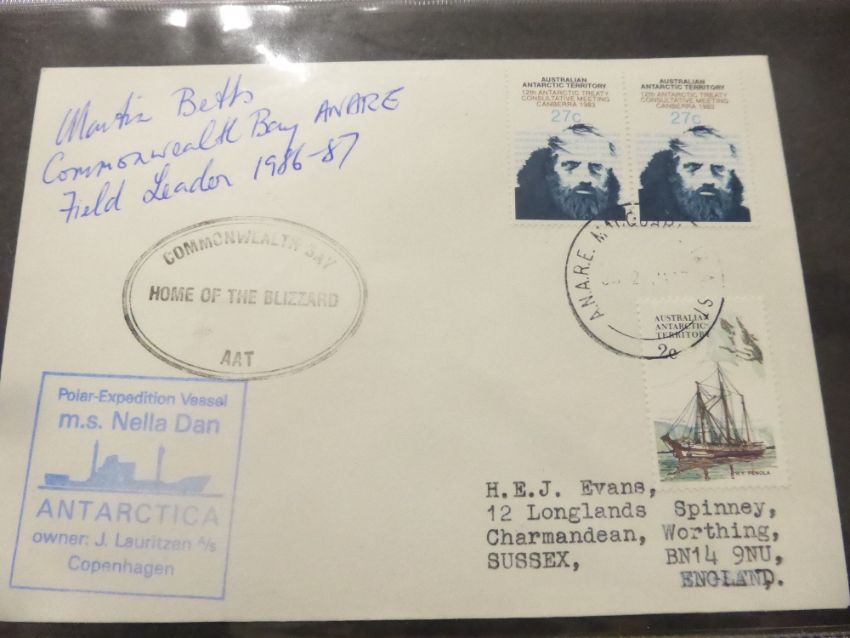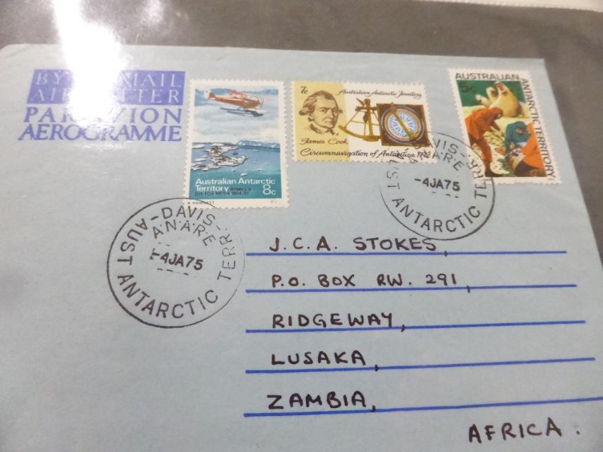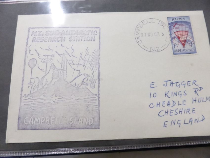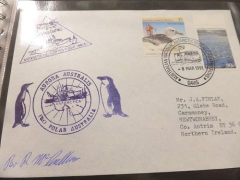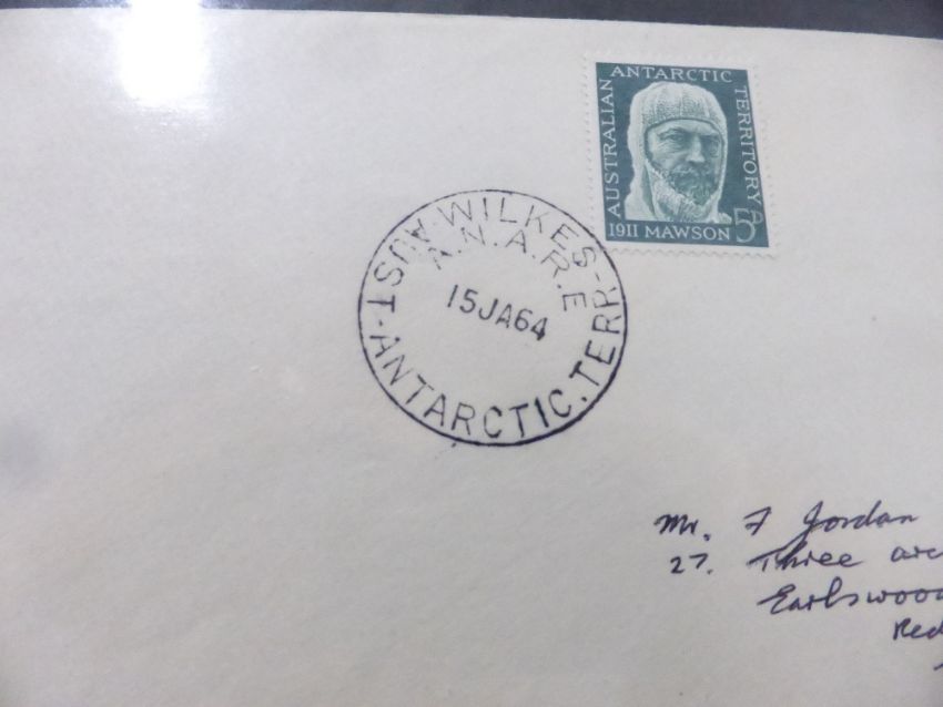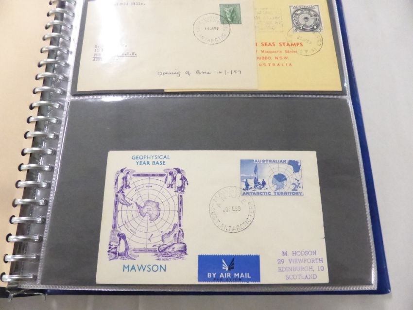 AAT & ROSS DEPENDENCY 60+ COVERS FROM 1950's FOR ANTARCTIC EXPEDITIONS ETC Fine collection of covers with 37 AAT (australian Antarctic Territory) including a mix of first day covers from 1950's onwards, and event and Geographical Expeditions etc. Some of the covers are signed, but all bear various Antarctic handstamps etc. Ross Dependency sees a further 24 or so covers much of the same ilk. A lovely lot of material. Viewing recommended.
