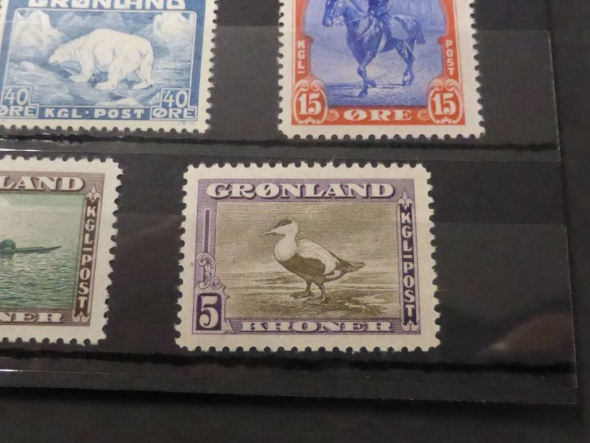 GREENLAND 1945 DEFINITIVES SET OF 9 UNMOUNTED MINT (HARP SEAL, KING CHRISTAIN X, INUIT KAYAK) One of the two more elusive sets from Greenland, this being the 1945 definitives, which are all unmounted mint, values depict the Harp Seal, King Christain X and Inuit Kayak. See Lots xx xx xx for further Greenland lots