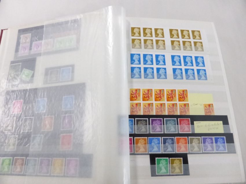 GREAT BRITAIN 1950's-2000's LARGELY MODERN MINT NEVER HINGED FACE APX £450 Large stockbook with front 2/3 with modern material plenty of NVI's etc. Includes various sets, booklets, large part sheet panes etc with mix of definitives and commemorative issues. Later on in volume we note some 1950's/60's material but a good run of MNH sets for items from the mid 1980's through to the mid to late 1990's. We count face to the region of £450.