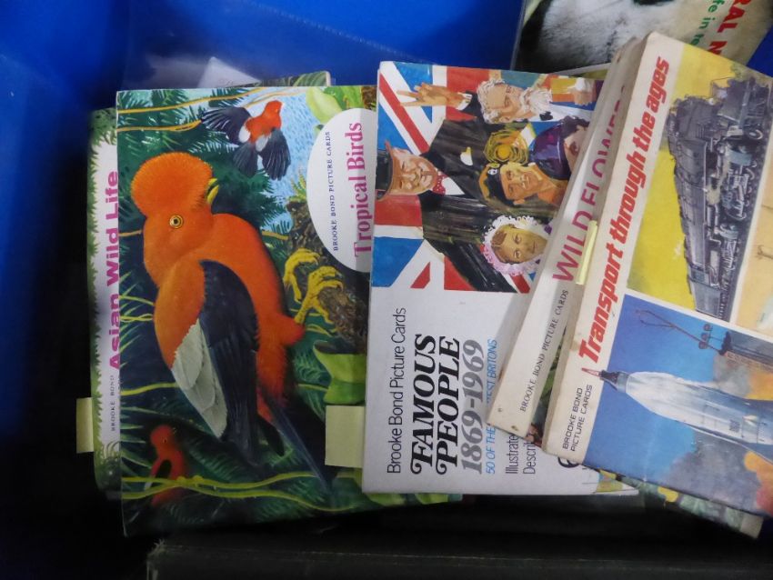 TRADE CARD ALBUMS & SOME CIGARETTE CARDS, TUB WITH 60+ VOLUMES Collection of 60+ volumes with a mix of complete, empty trade card albums, along with some empty cigarette card albums.