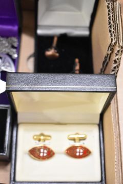 A good collection of mens cufflinks including Masonic interest as well as pin badges and horse brasses etc.