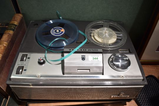 A vintage German Grundig TK 140 de Luxe reel-to-reel tape recorder, featuring a quarter-track mono recorder, a single two-pole motor and two heads, also portable, 40cm x 29cm, condition consistent with age and use, sold as seen.
