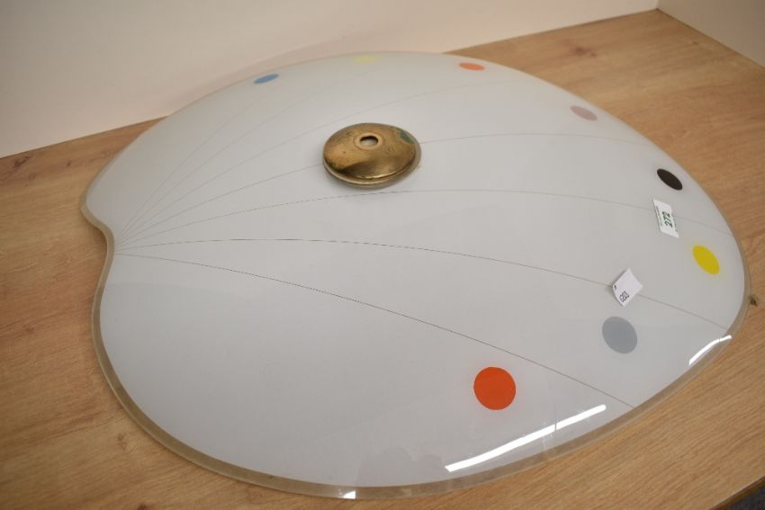A mid-century extra large white artists pallete shaped ceiling light with coloured dots 59cm x 47cm shade only no fittings.
