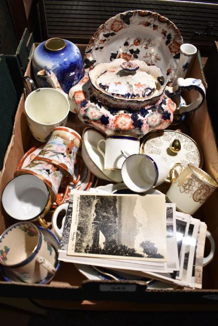 A Royal Doulton 'Blue Children Series' vase, a Royal Doulton 'Goosey Gander' beaker having a silver plated handle and a selection of tea cups and saucers etc.