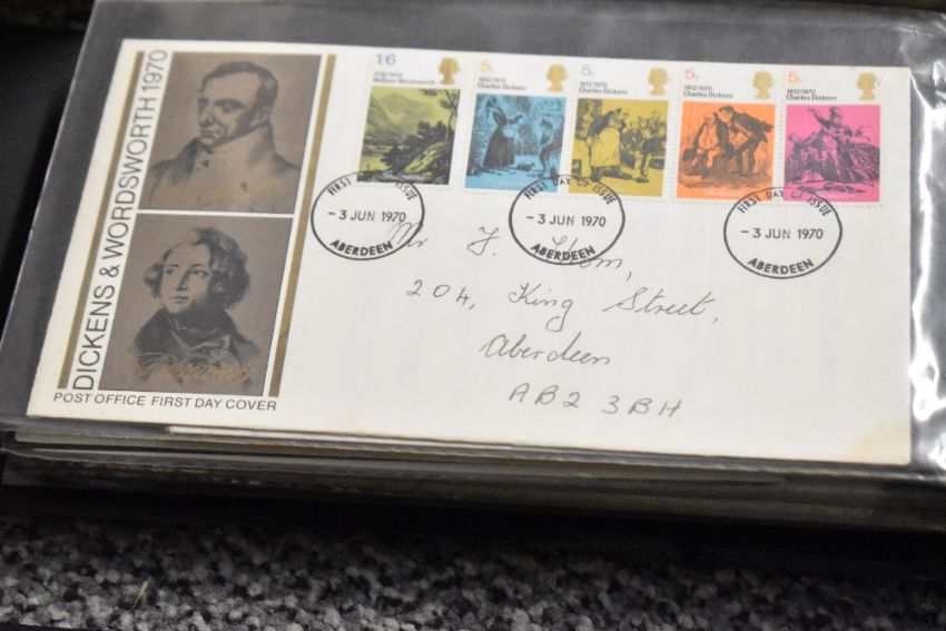 A large quantity of stamps, to include GB first day cover collection in four volumes; a flat box of GB on leaves/stocksheets; covers 1960's to 80's, flatbox has old time GB and includes high values, (one box full), condition is consistent with age and use.