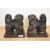 Two early 20th-century carved hardwood Chinese Foo dog book ends, featuring detailed fur decoration upon low pedestals, unmarked, but to the back of both pedestals lightly inscribed in pencil/carving as gifts, the right Foo reading ‘From Major Graham Sco[illegible] 1934 SSVF Singapore (Birthday)’, the left Foo reading ‘From Major Grayham Sc[illegible] Singapore 1934’, 18.5 cm in height, condition consistent with age and use, with visible surface dust consistent with storage. In 1934, the Straits Settlements Volunteer Force (SSVF) was a military reserve unit in British-ruled Singapore and the wider Straits Settlements. While it is unclear whether the inscriptions on these book ends are directly connected to this organisation, the reference to “Major” and “SSVF” suggests a possible link, as the unit included officers of that rank. The exact individual referenced can not be positively identified.