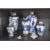 A quantity of late 19th to 20th-century Chinese blue and white porcelain Nanking vases, of varying baluster forms, featuring floral, foliate and figural designs with deep brown ornate bands; one features a Fo-dog finial to lid, some marked with Chinese-style reign marks to base but not all, (5), condition is consistent with age and use, considerable fixed damage to all five with chips, cracks and glue residue.