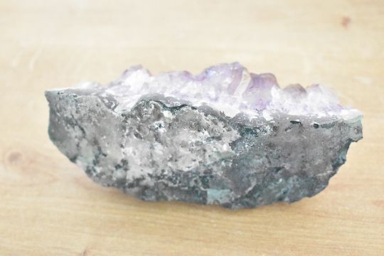 A small 20th-century Amethyst geode, featuring a deep purple quartz, 13cm in length and 4cm in height.