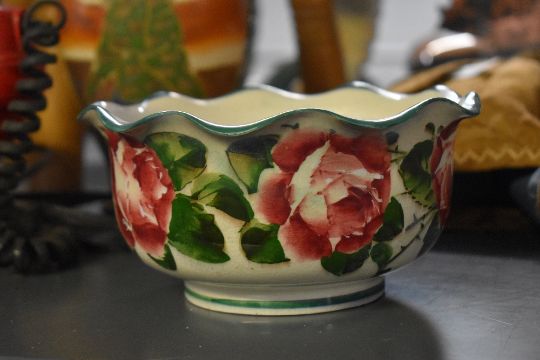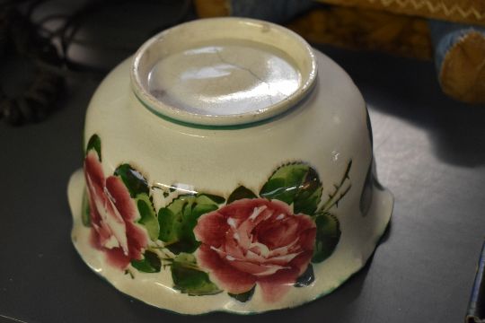 A 19th-century Scottish Wemyss Ware pottery bowl, having a scalloped edge with delicate cabbage rose decoration, marked to base, 16.5cm diametre, condition is consistent with age and wear, slightly deeper crack to area of crackle glaze to base with general surface wear to interior.