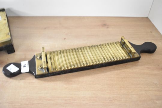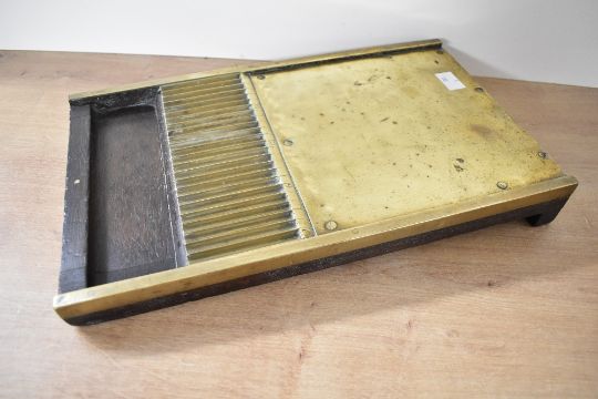 A Victorian Apothecary wood and brass pill roller, used by chemists to create medicinal pills, unmarked, 34cm x 20cm, 42cm, condition is consistent with age and use, roller is still attachable and moves smoothly and with ease, a few visible surface marks to brass.