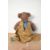 A late 19th-century hand made teddy bear, of a light brown fur, a stitched nose, mouth, paws and bead eyes, featuring hand stitched and hand knitted clothes, 39cm, condition is well loved.
