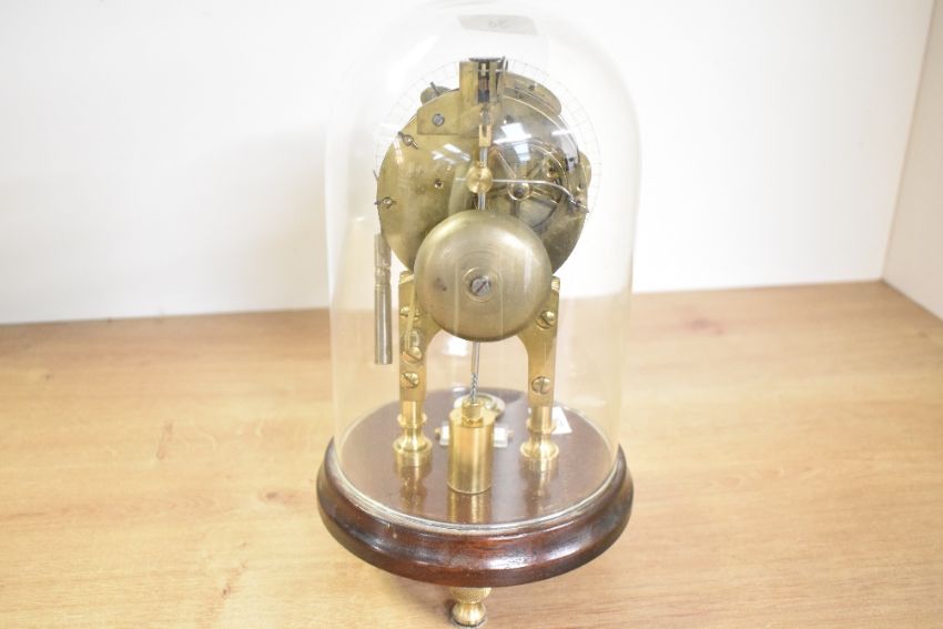 A late 19th-century French Louis Achille Brocot (1817–1878) mantel clock, restored by A.W. Midgeley in 2013, having an added perspex clock face and some additional parts, placed under a glass dome upon a circular wooden base with three circular feet, small plate to base with A.W. Midgeley name and marked L. Brocot to top section of clock mechanism, 25 cm, condition consistent with age, use, and restoration, accompanied by key, sold as seen.
