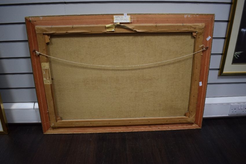 David Mead (British 1906 - 1986) Oil on canvas, an Autumnal mountainous river scene, signed lower right, attributed verso, within moulded gilt frame, 90cm x 59.5cm & 103cm x 72cm overall. *artist's birth and death years listed verso are incorrect.